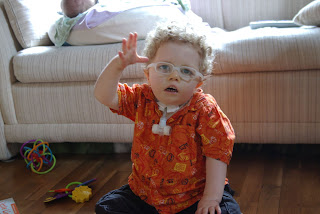 When we went to pick up the glasses I had a momentary freak out moment as the optometrist put some alien green glasses on him. I said "no thank you" can you just put the new lenses in the frames he has. So thankfully we left with a cute Luke in white glasses.